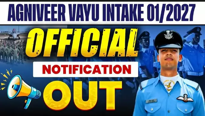 Indian Air Force ने Agniveer Vayu Intake 01/2027 के लिए आधिकारिक अधिसूचना जारी कर दी है।
