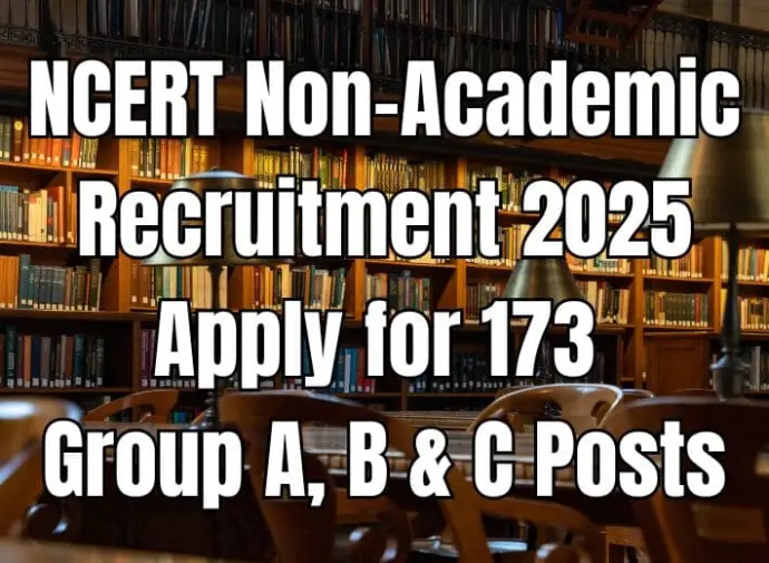 NCERT Non-Academic Recruitment 2025 के अंतर्गत Group A, B और C के विभिन्न Non-Academic पदों के लिए ऑनलाइन आवेदन आमंत्रित किए गए हैं।